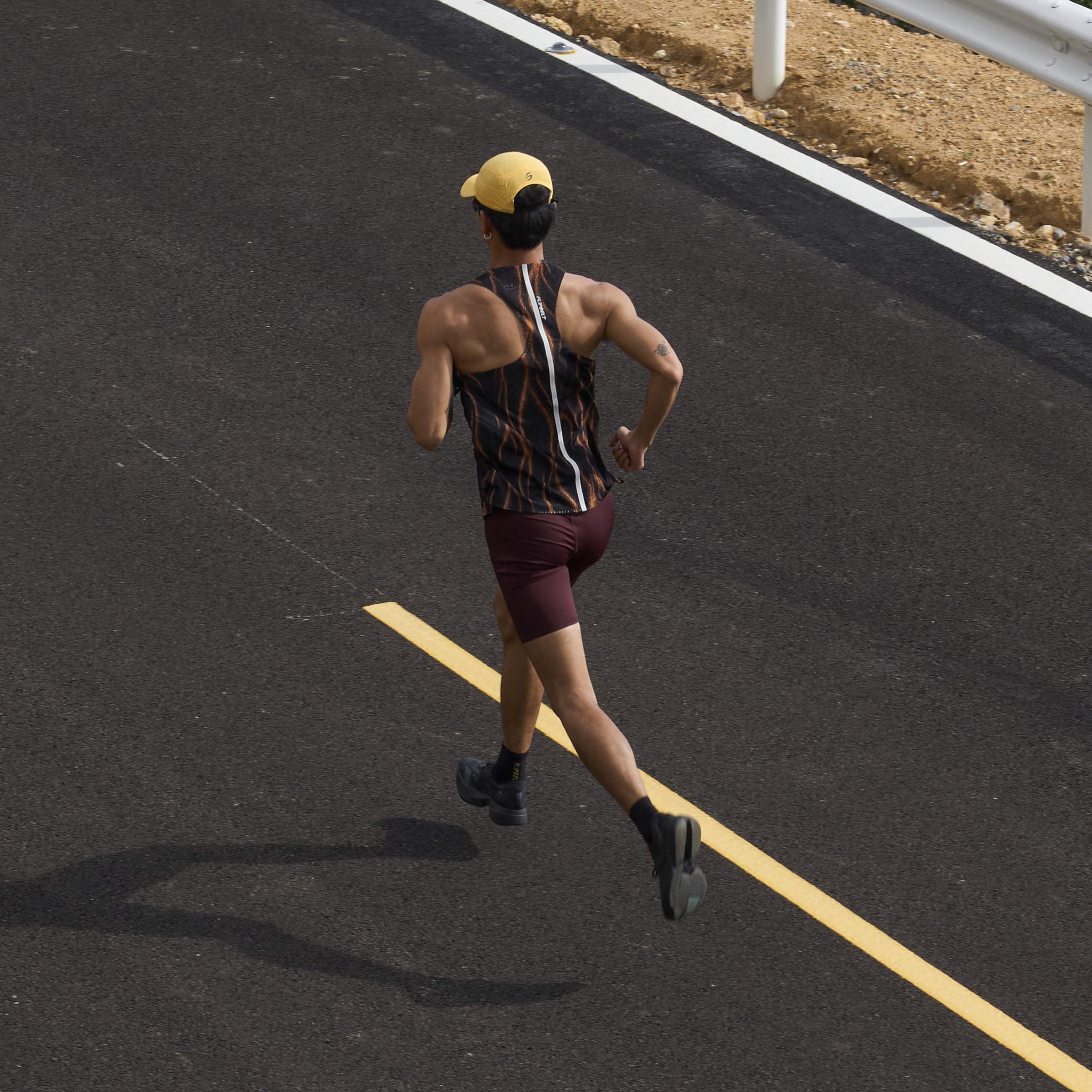 Higher Raised Side Splits — Enhances ventilation and allows effortless access to waist-pack items without breaking stride.